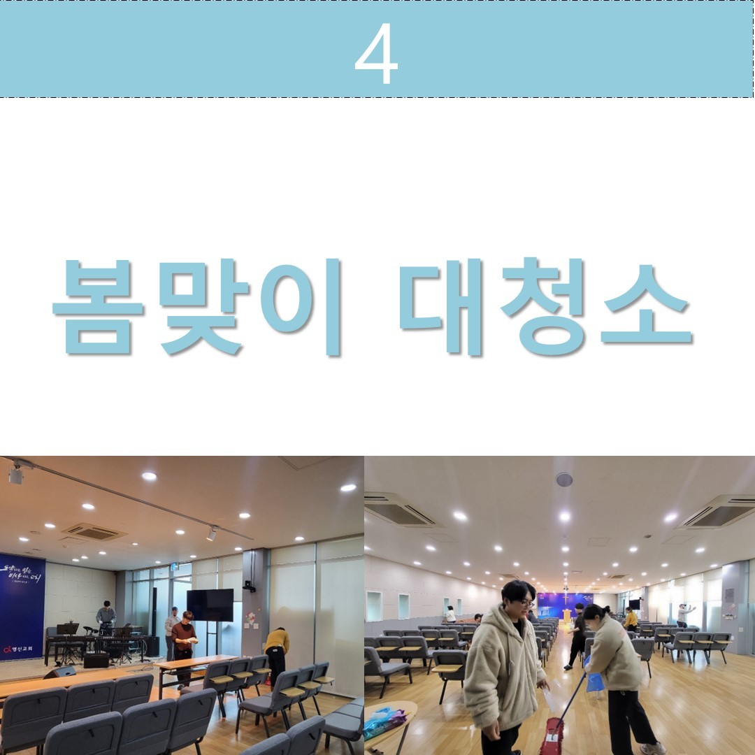 신입생 / 대청소 / 청년주일 / 청년헌신예배 / 고난주간특새특송 / 어버이주일