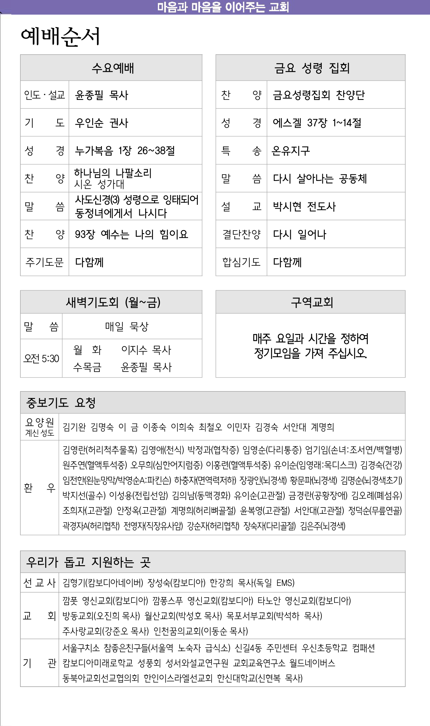 3월 8일 교회소식