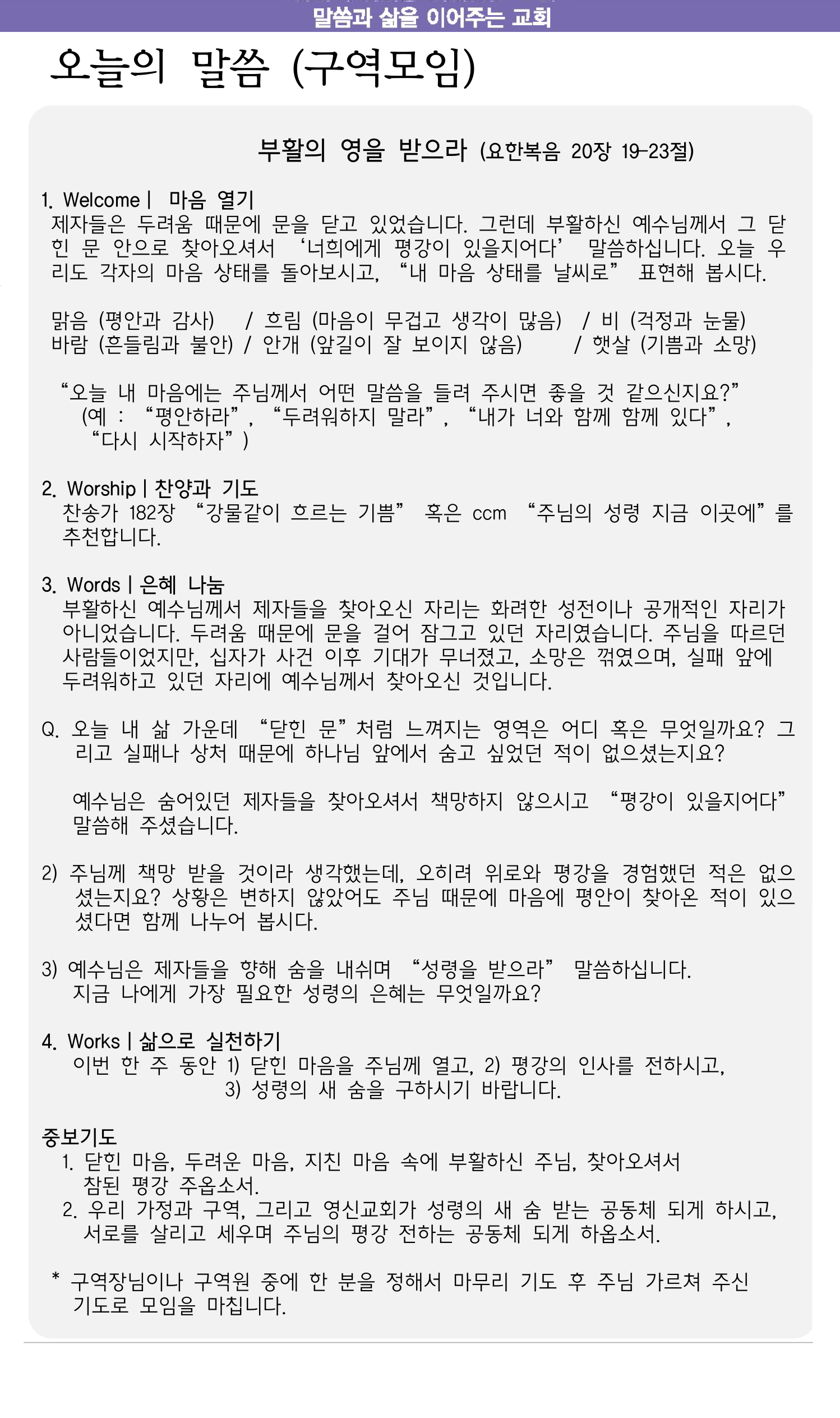 4월 12일 교회소식