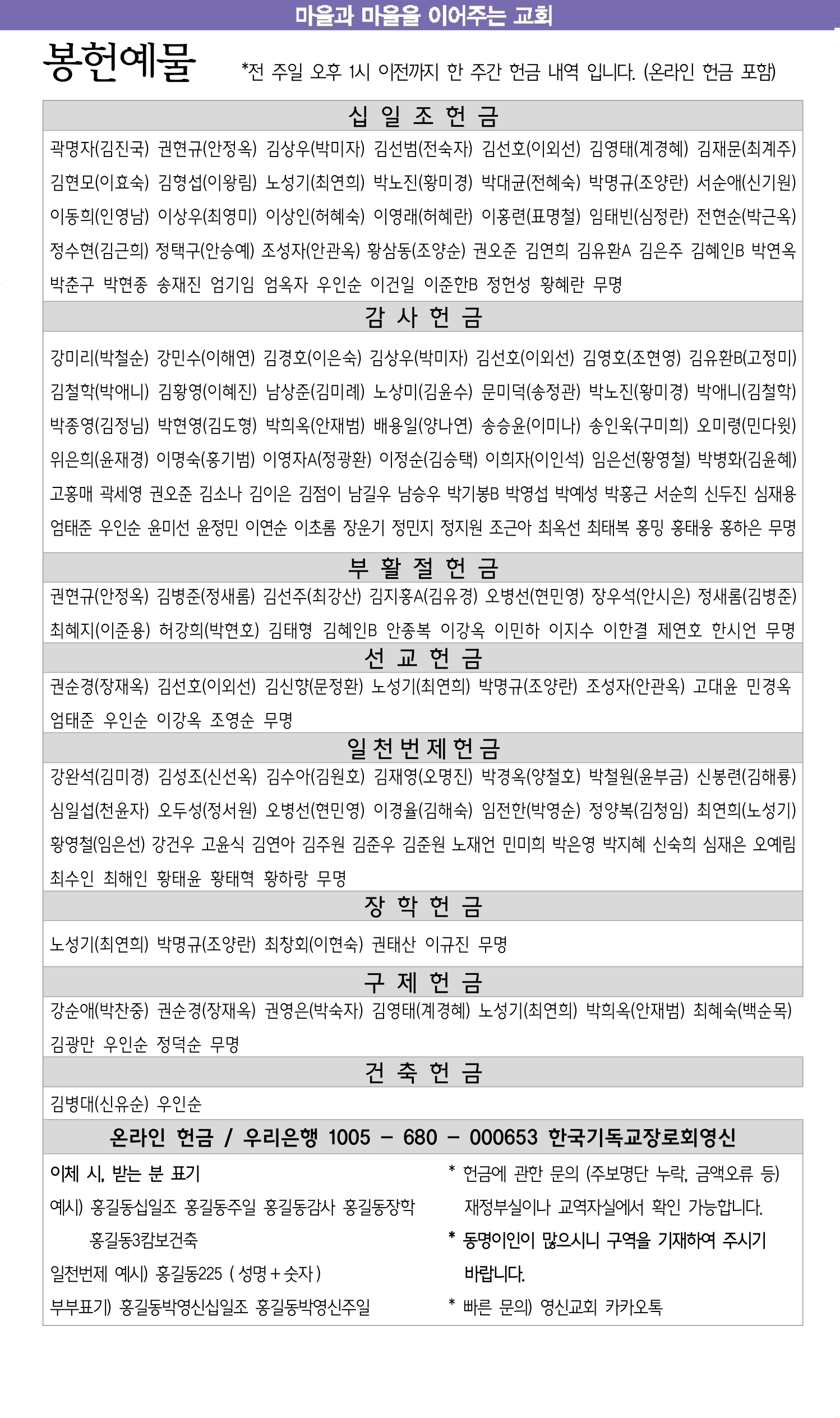 2월 15일 교회소식