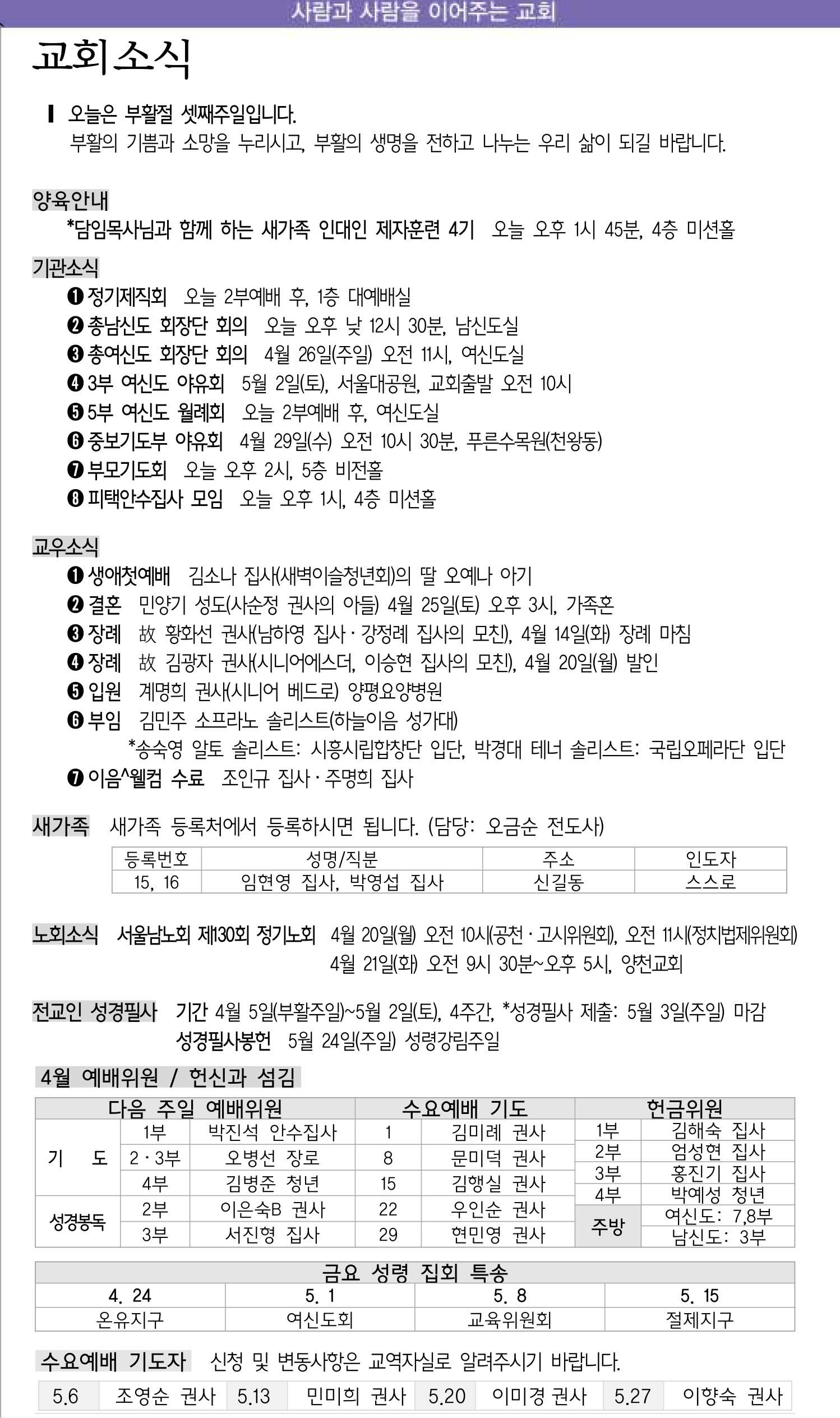 4월 5일 교회소식