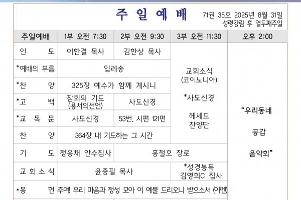 8월 3일 교회소식