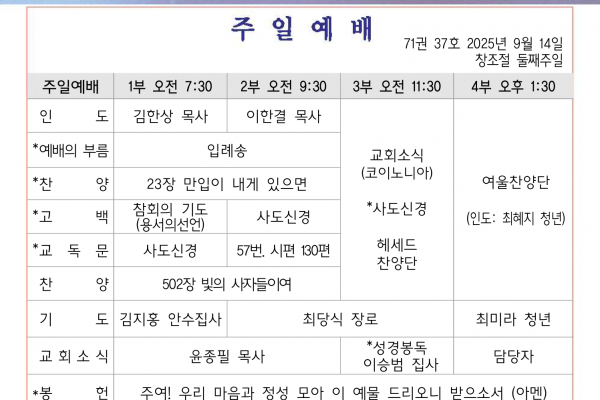 9월 14일 교회소식