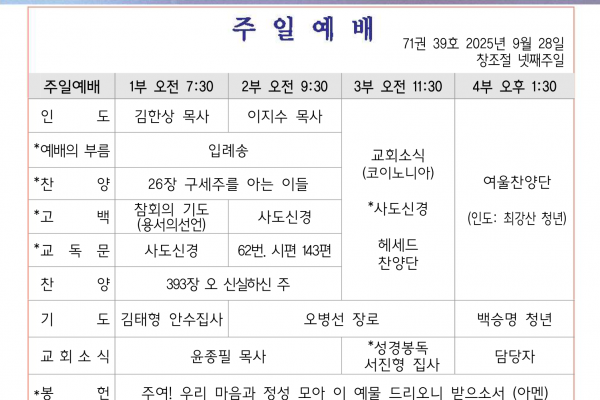9월 28일 교회소식