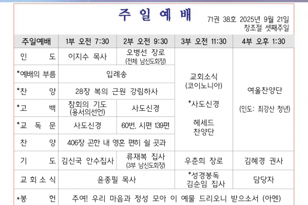 9월 21일 교회소식