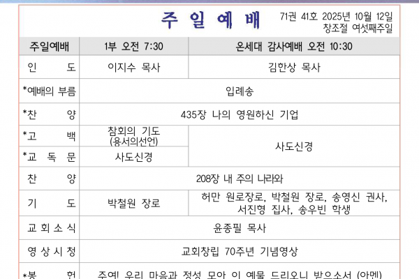 창립70주년 온세대 감사예배 순서지