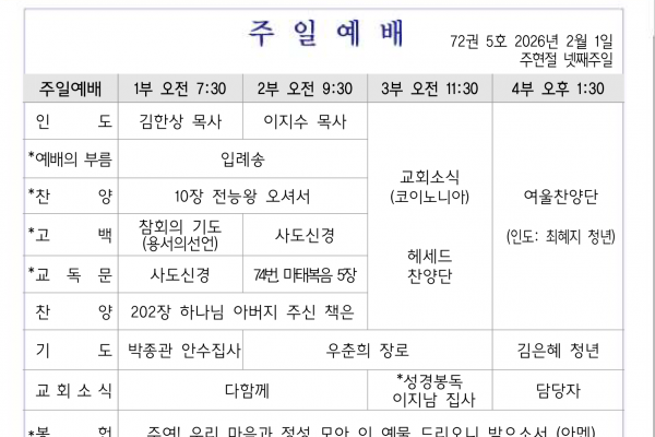1월 4일 교회소식