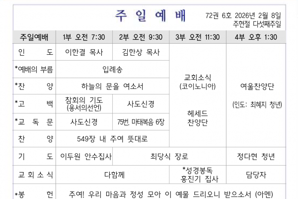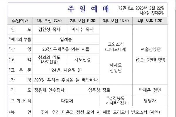 2월 1일 교회소식
