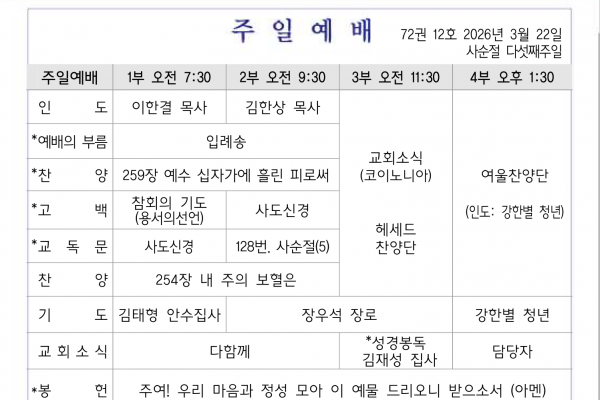 3월 22일 교회소식