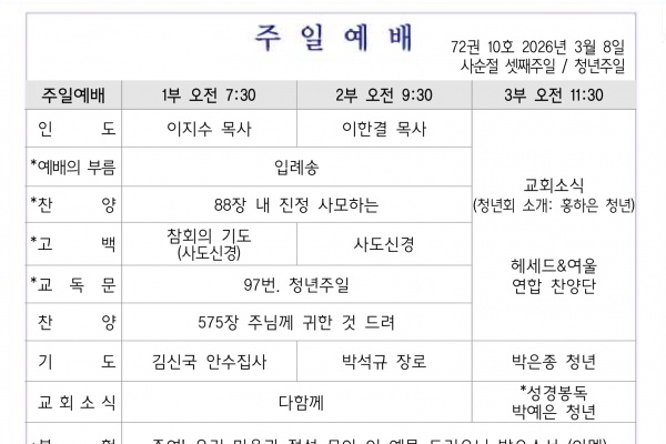 3월 8일 교회소식