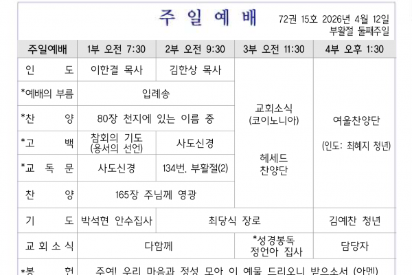 4월 12일 교회소식