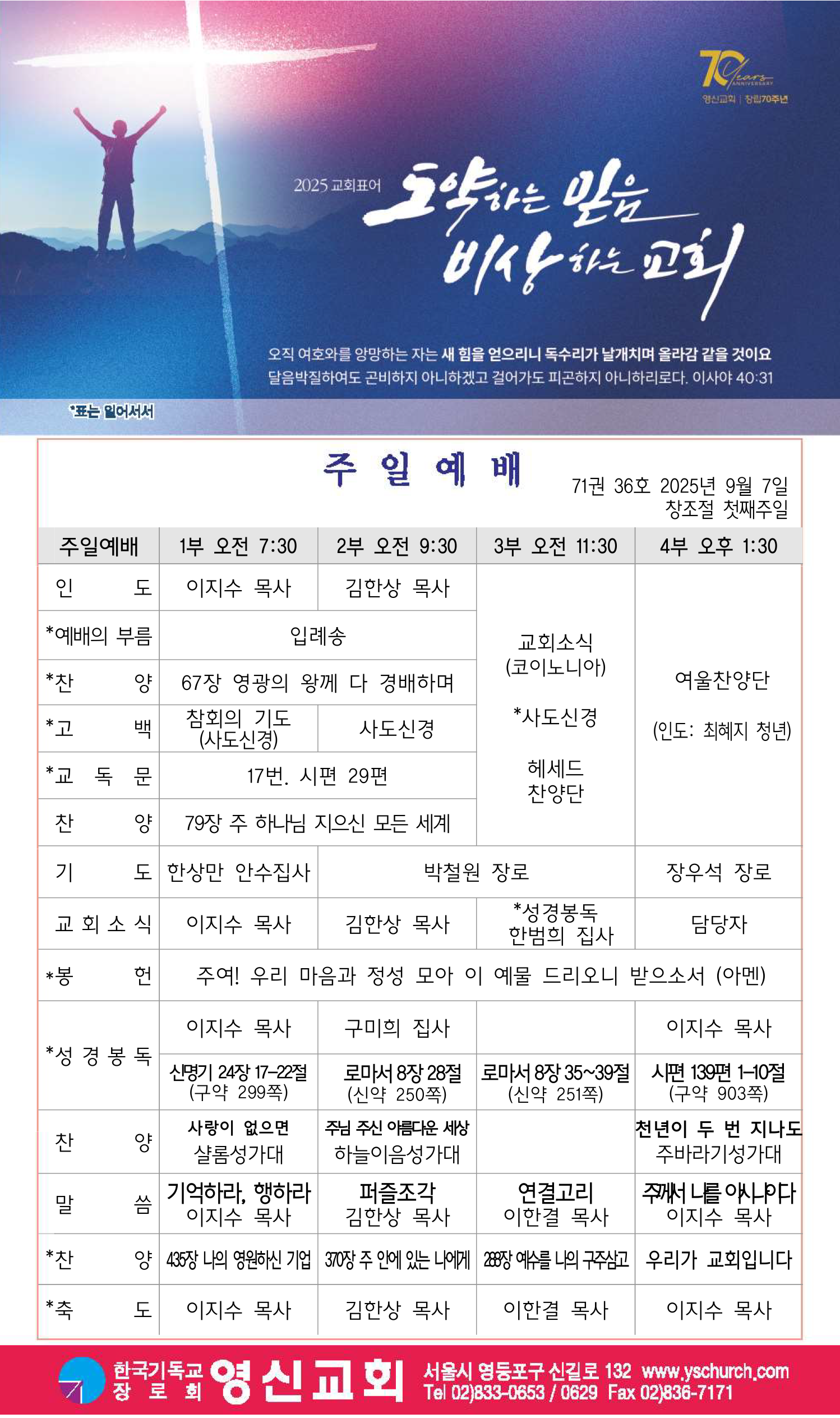 창립70주년 온세대 감사예배 순서지