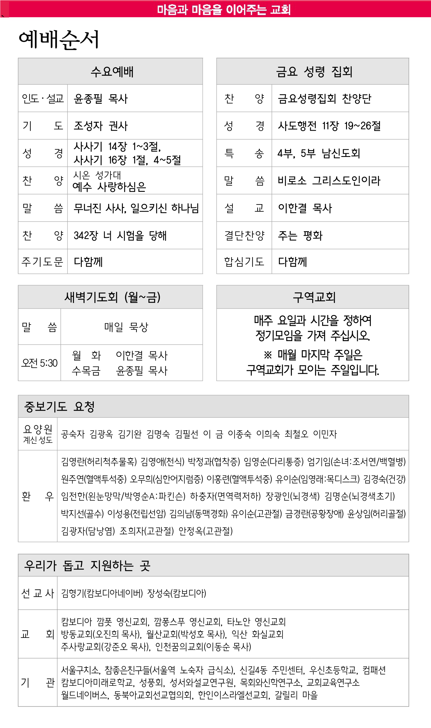 8월 24일 교회소식