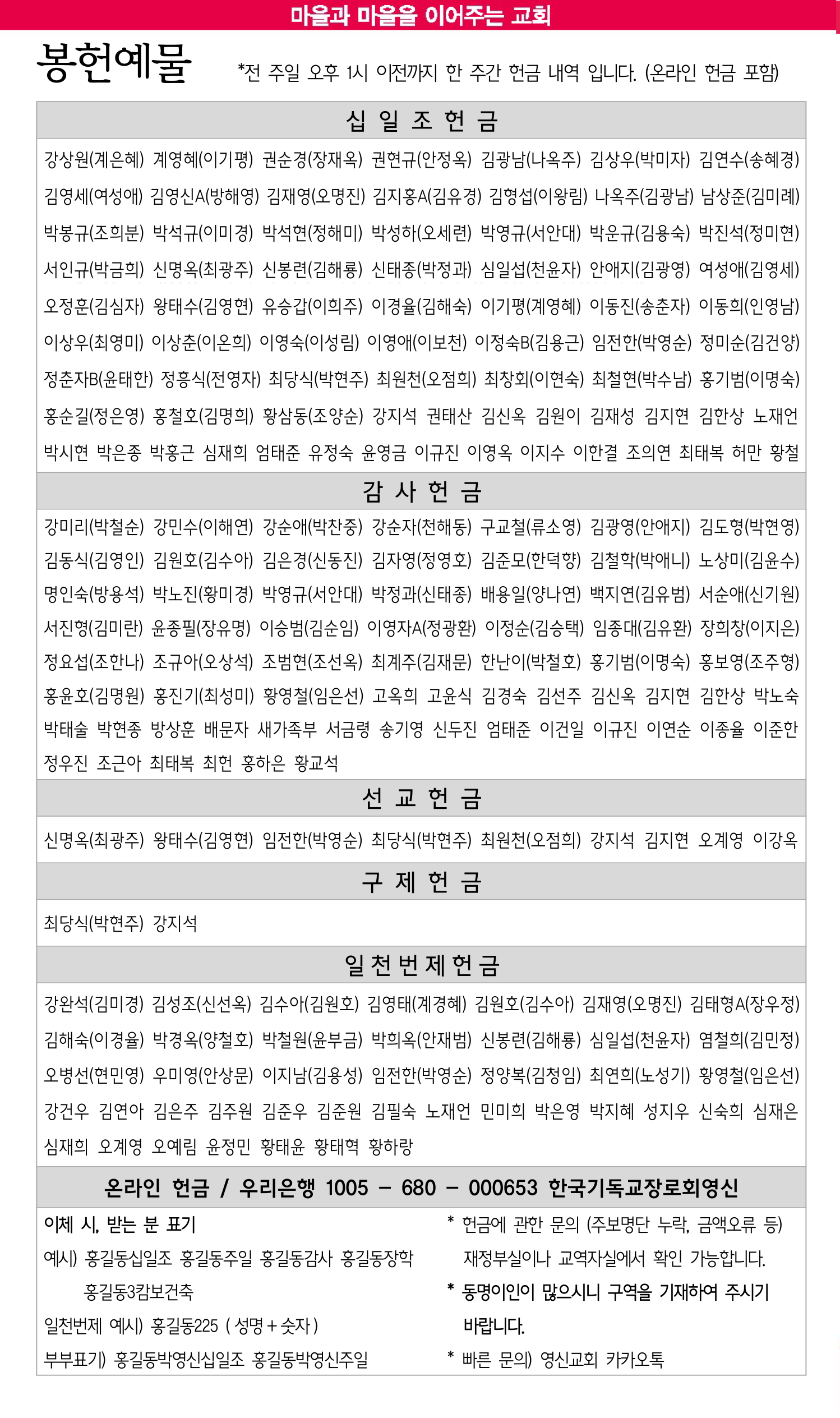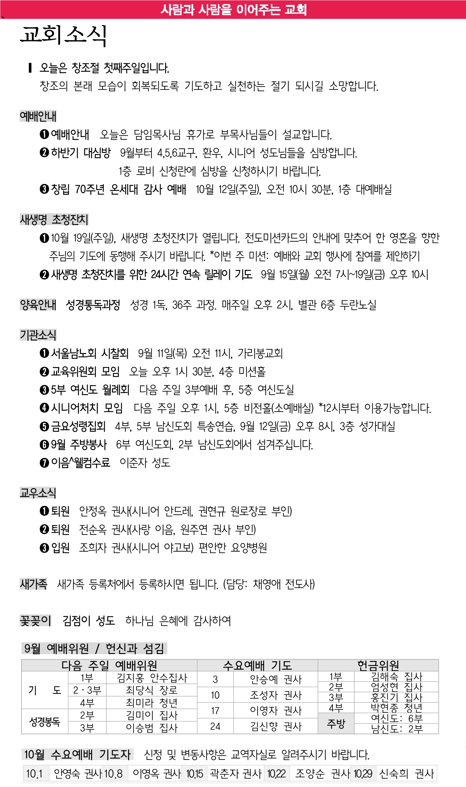 10월 5일 교회소식