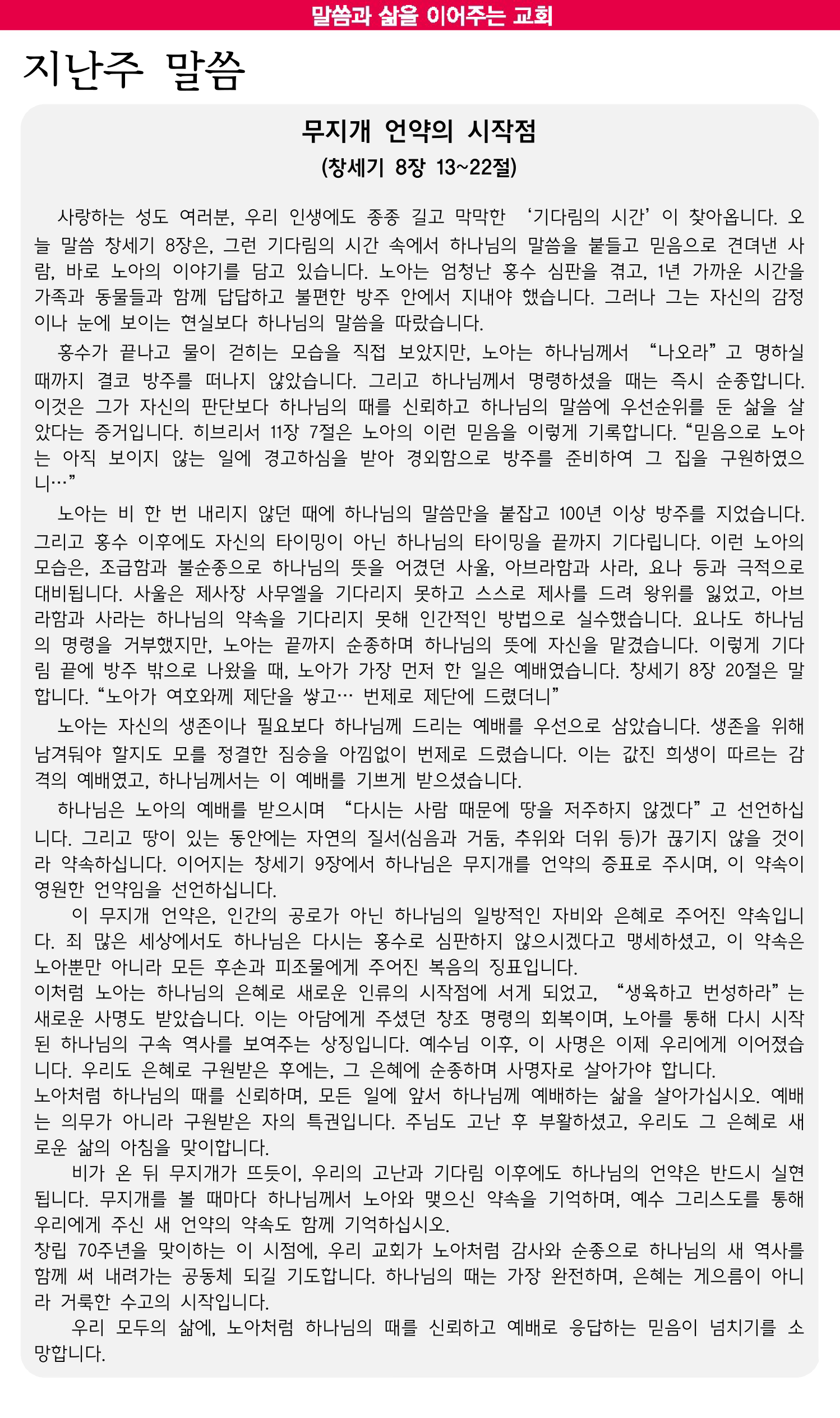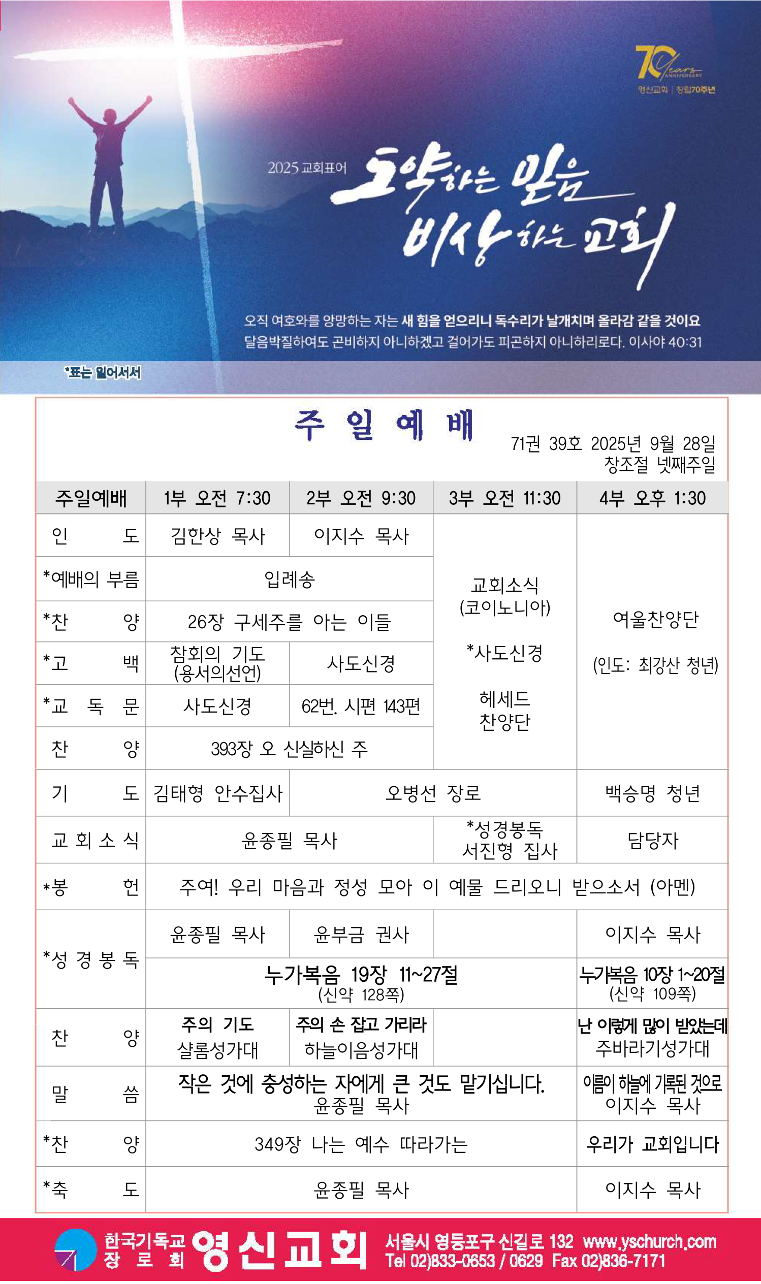 창립70주년 온세대 감사예배 순서지