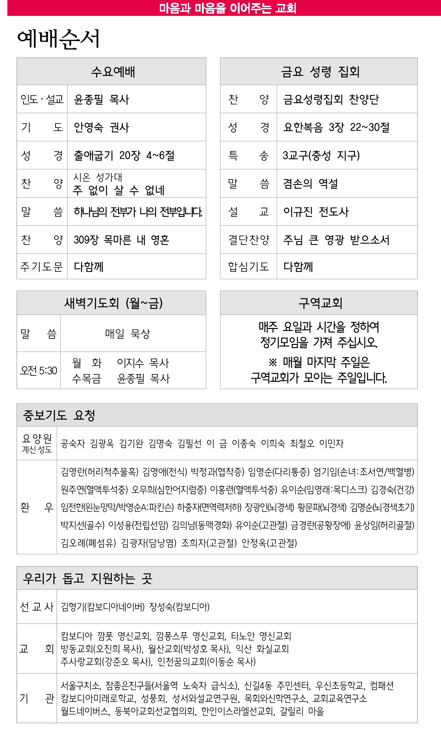 8월 24일 교회소식