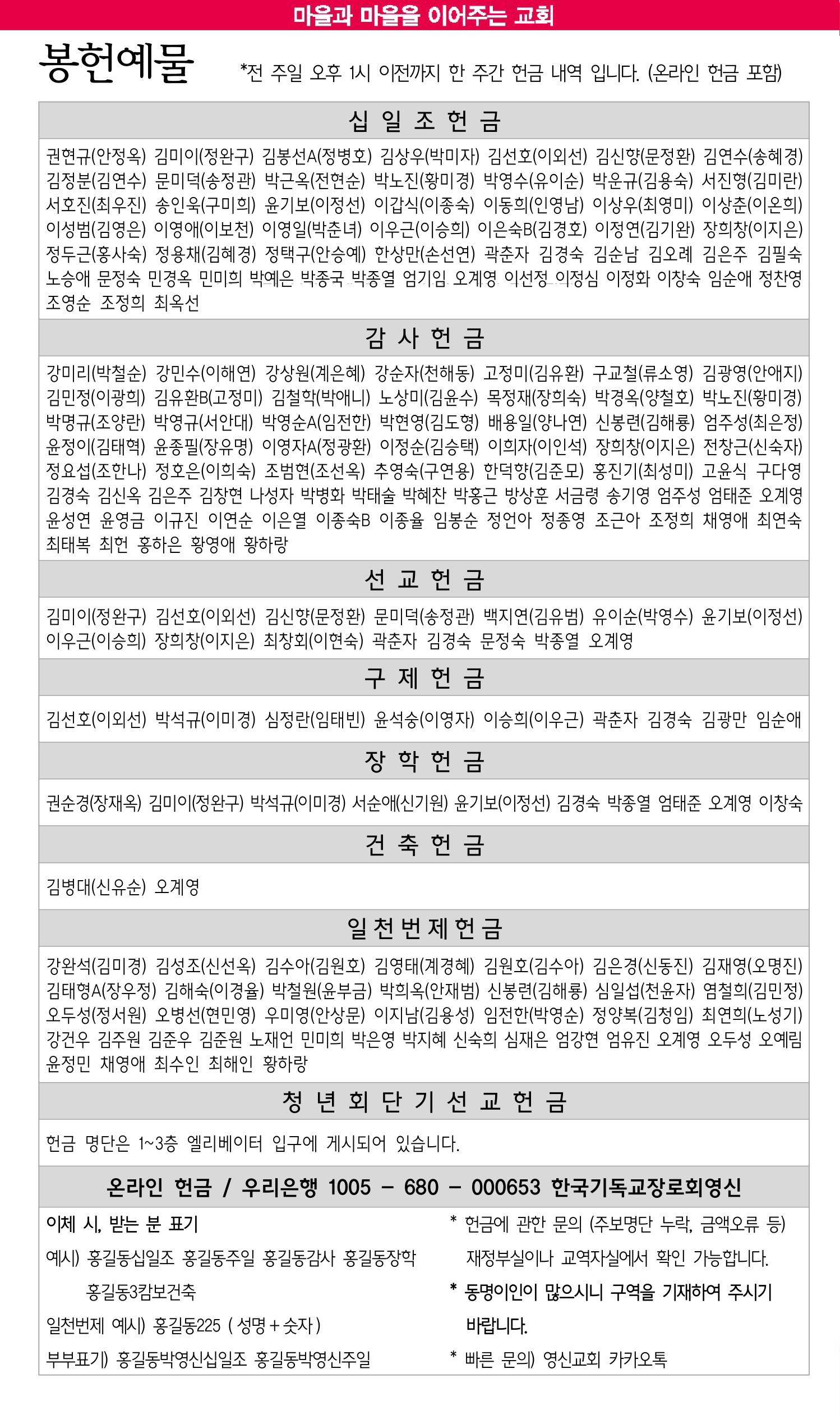 8월 17일 교회소식