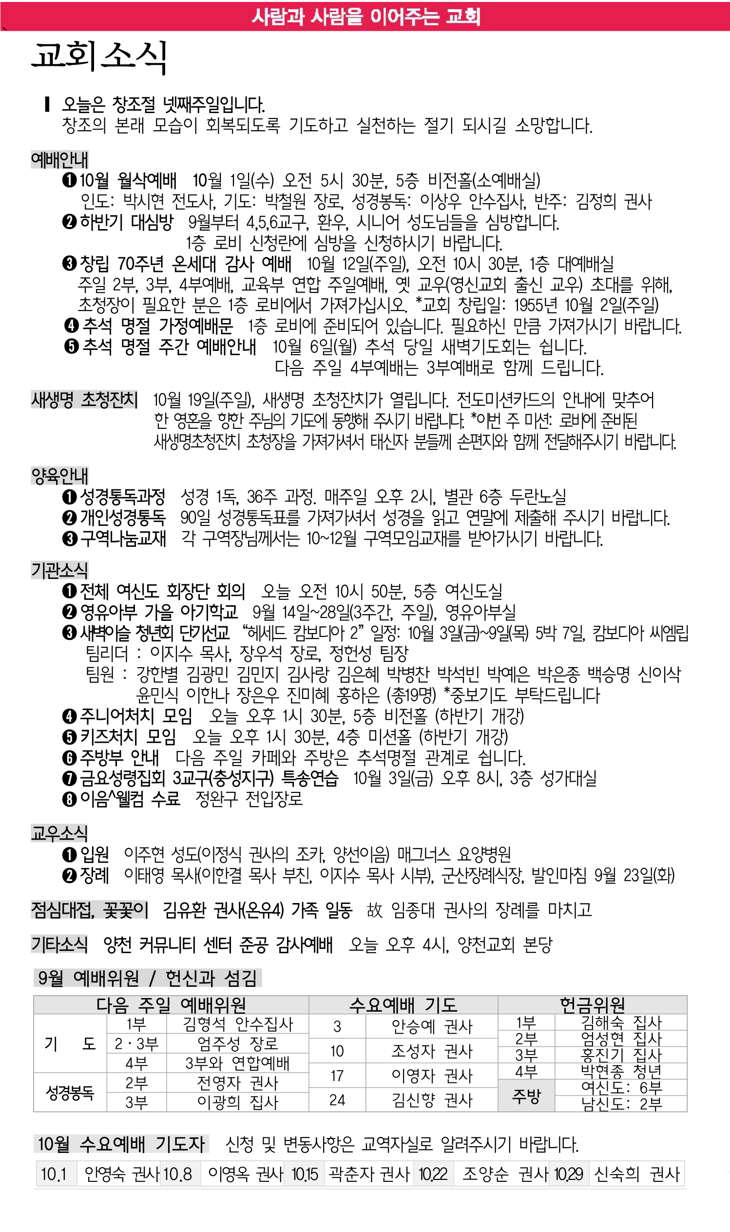 10월 5일 교회소식