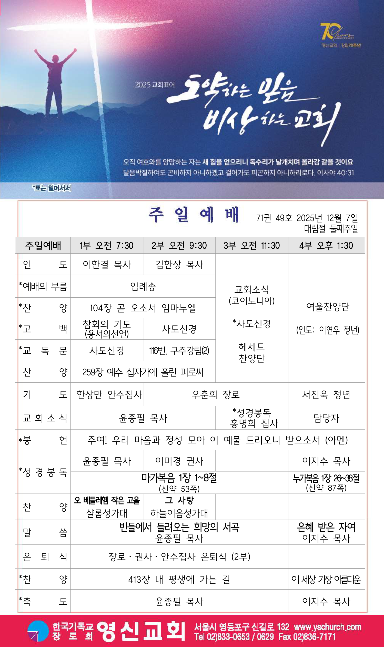 창립70주년 온세대 감사예배 순서지
