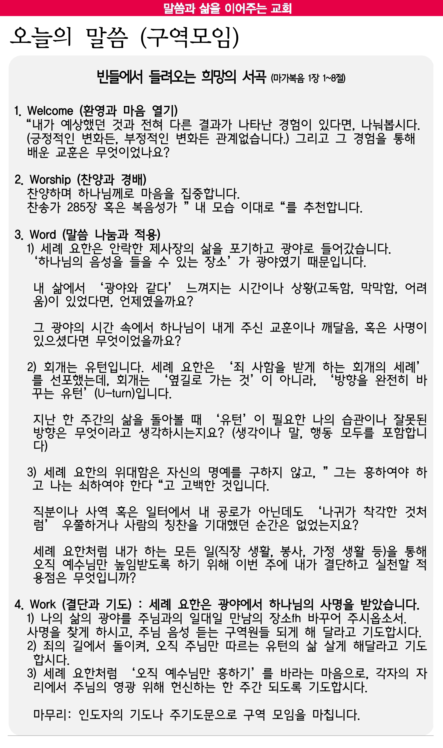 10월 26일 교회소식