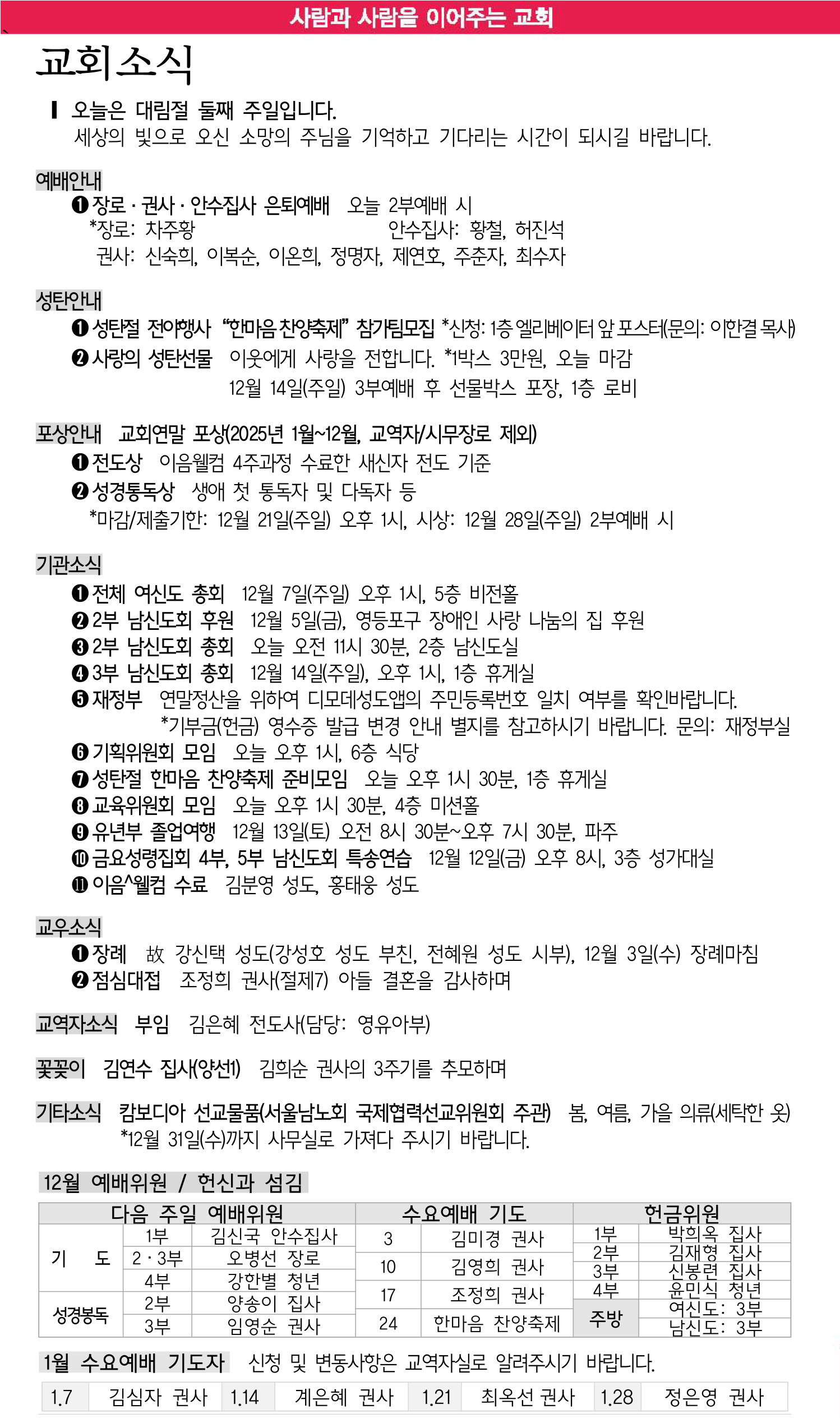 12월 7일 교회소식