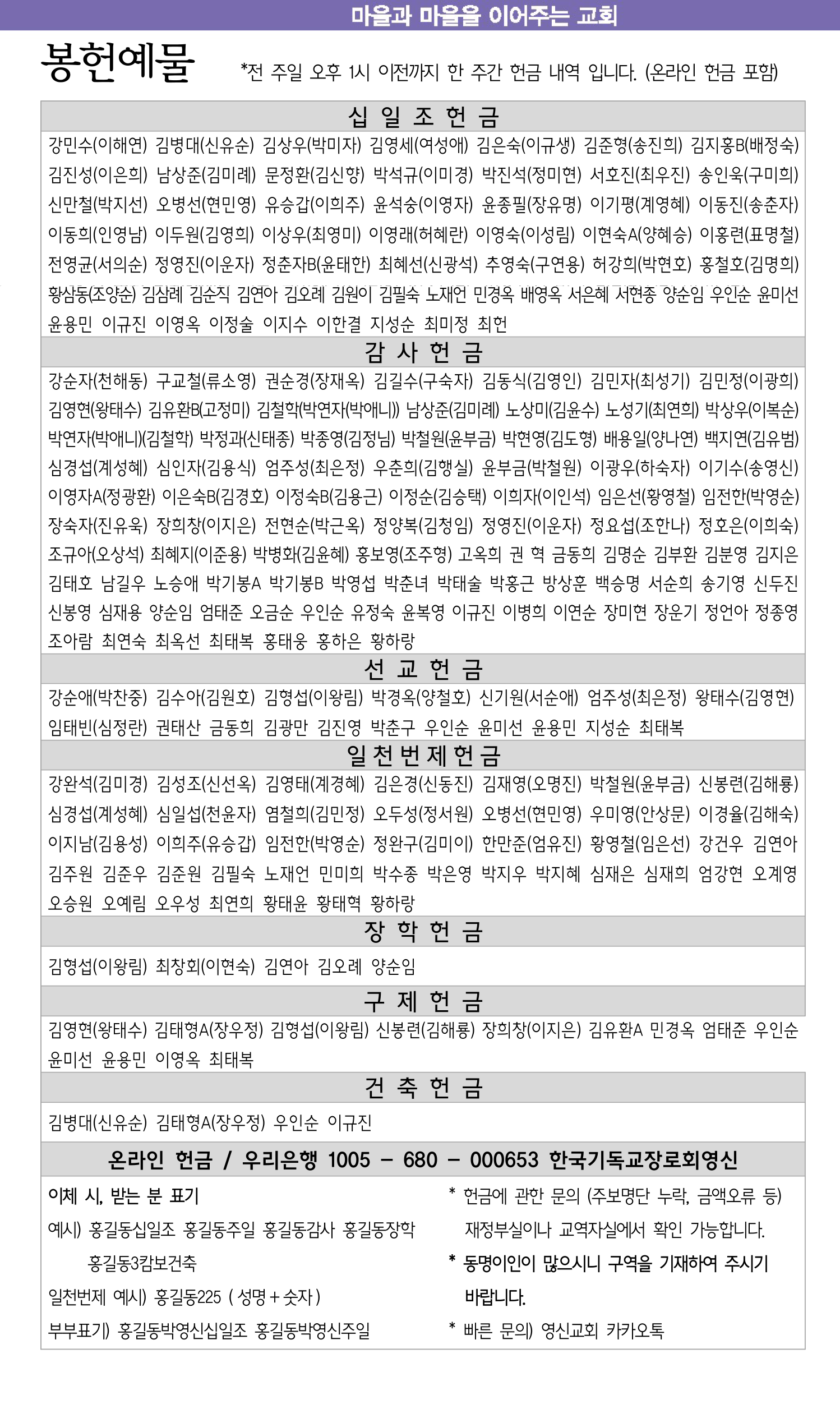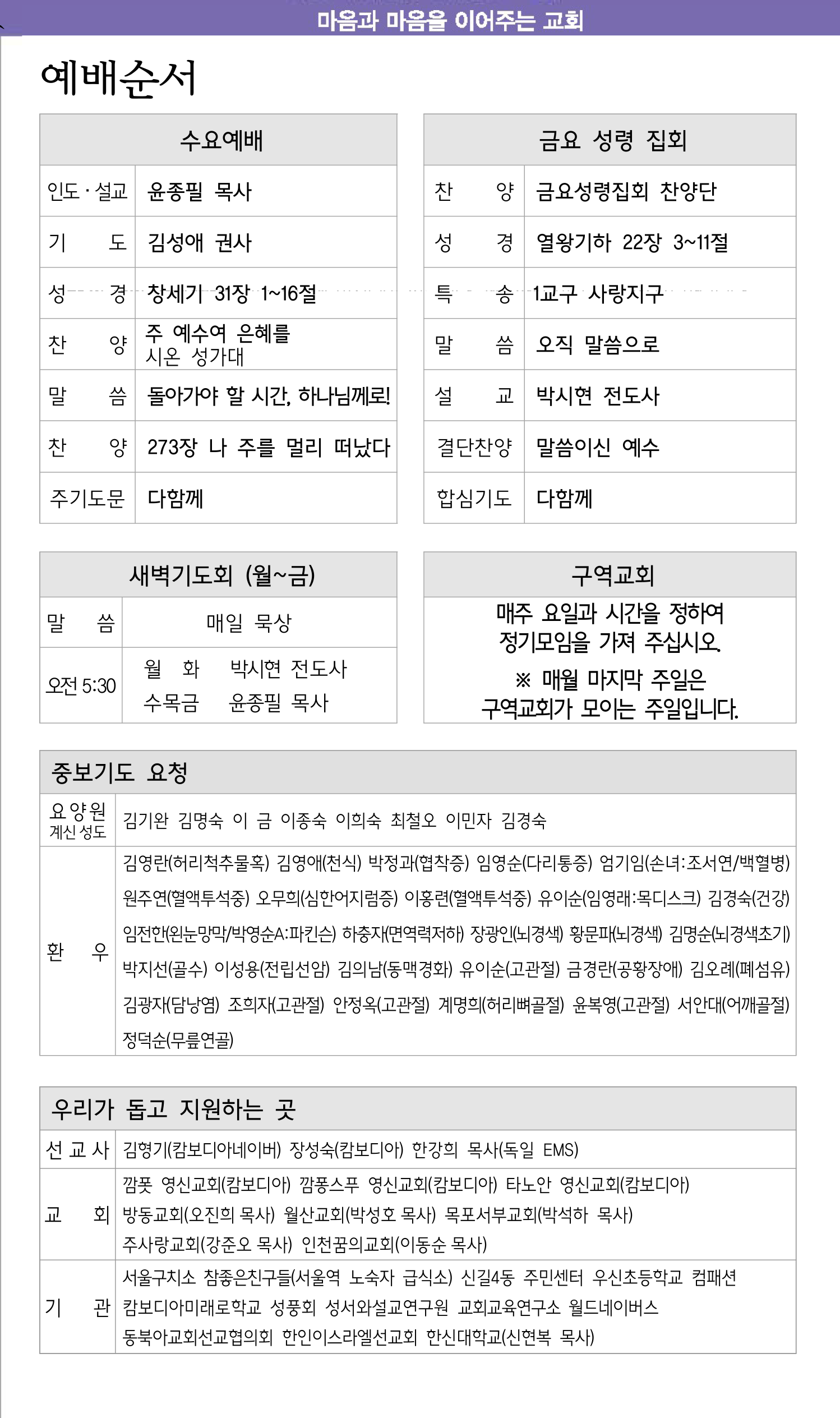 1월 11일 교회소식