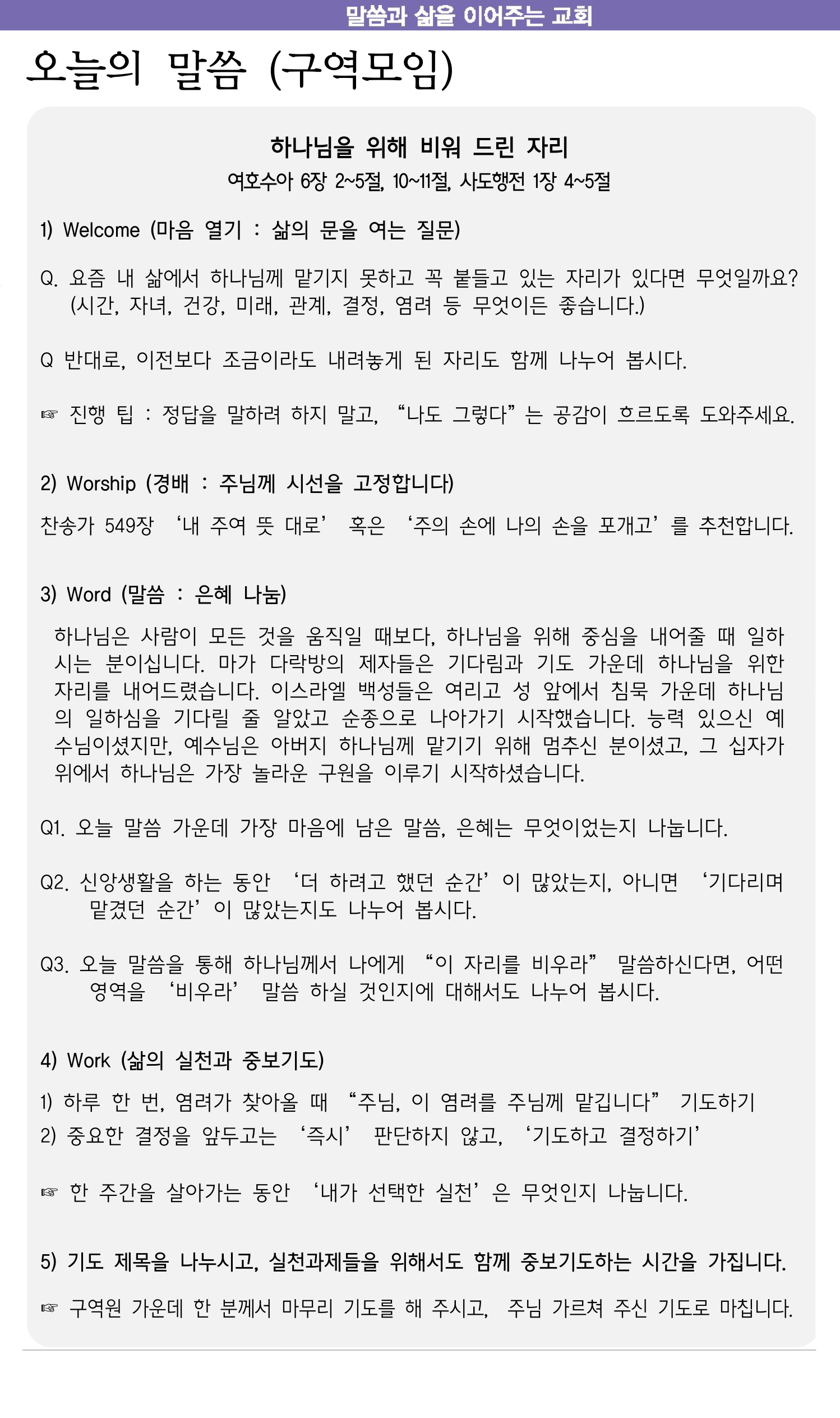 3월 1일 교회소식