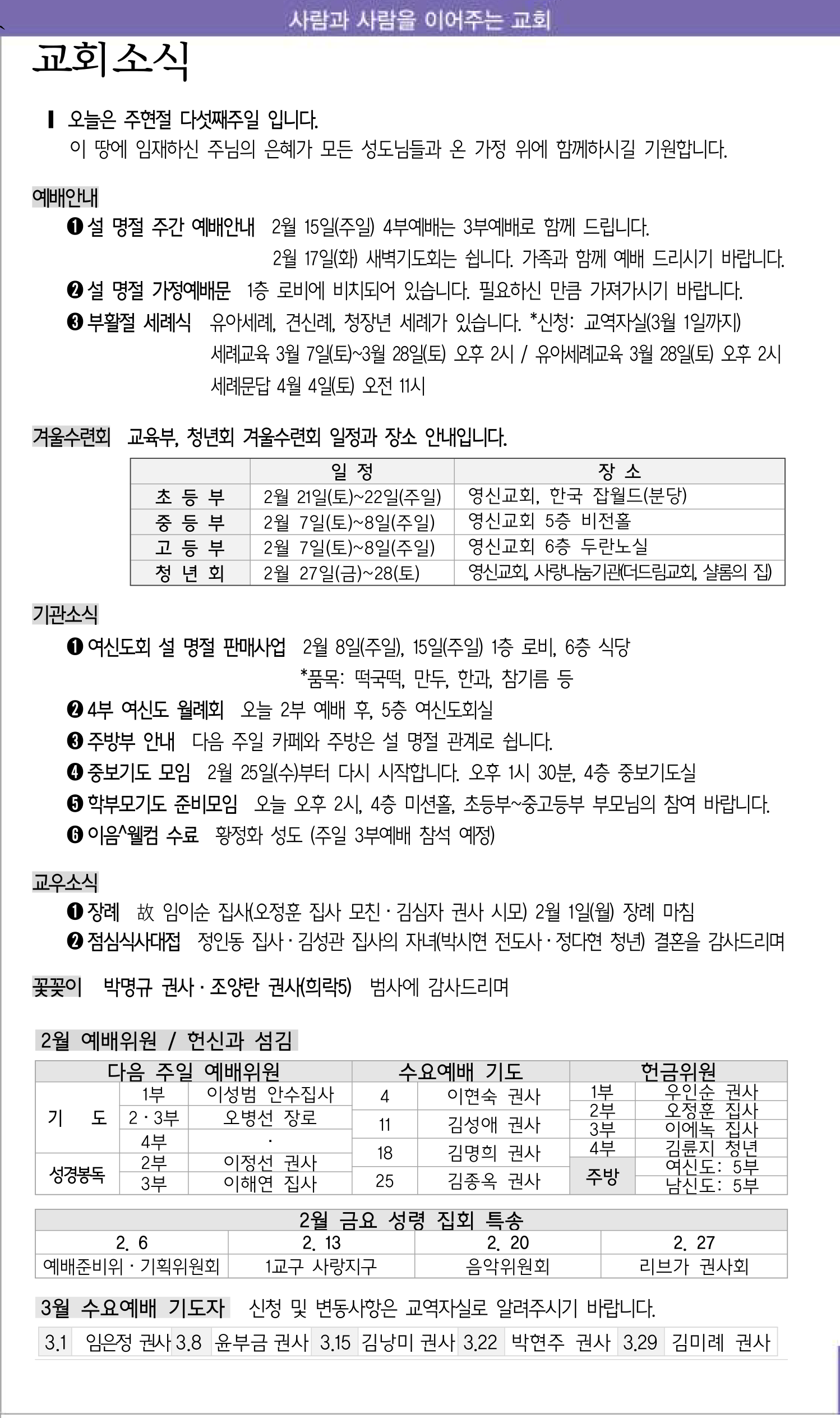 2월 15일 교회소식
