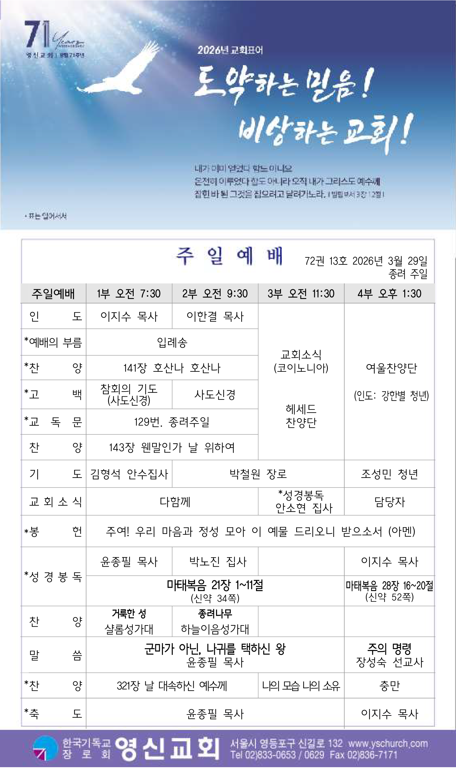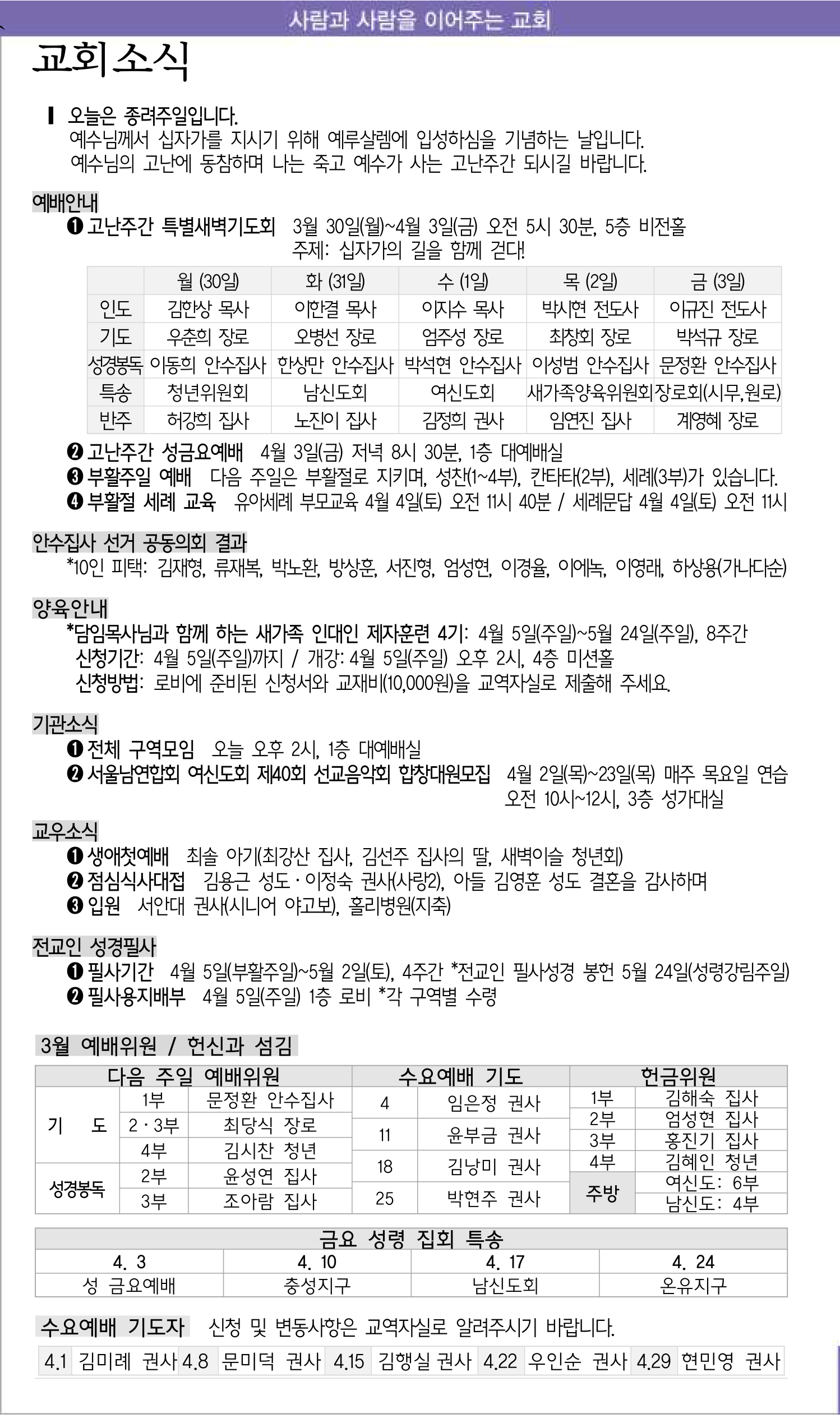 3월 29일 교회소식