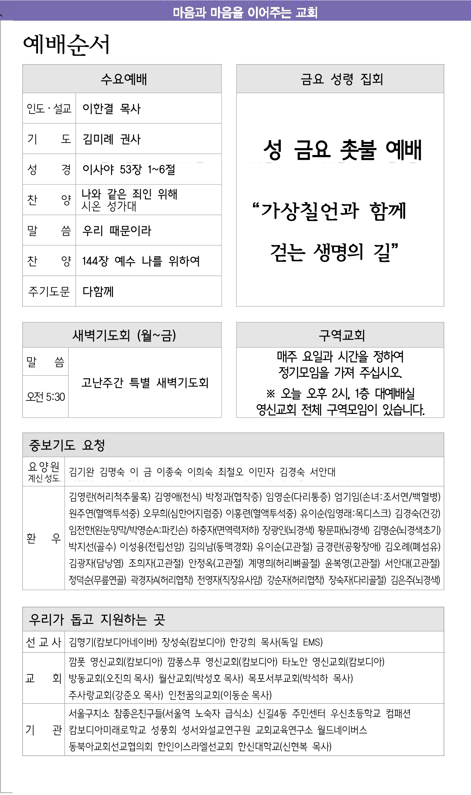 3월 22일 교회소식