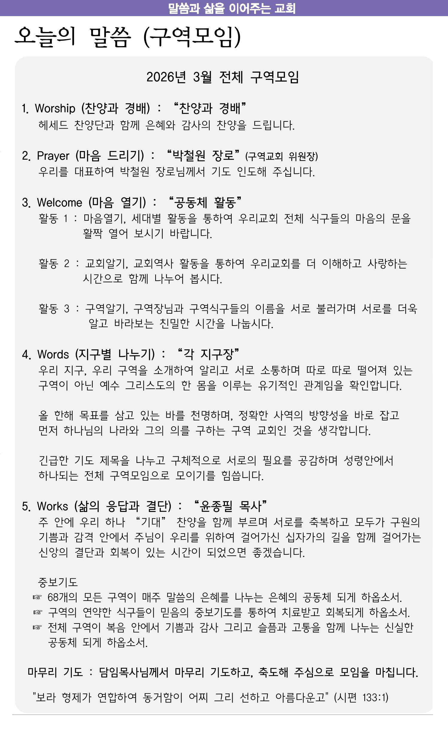 3월 1일 교회소식