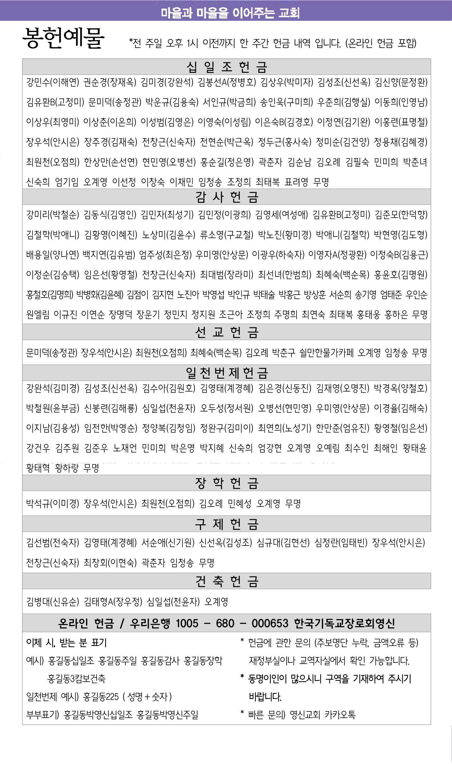 1월 25일 교회소식